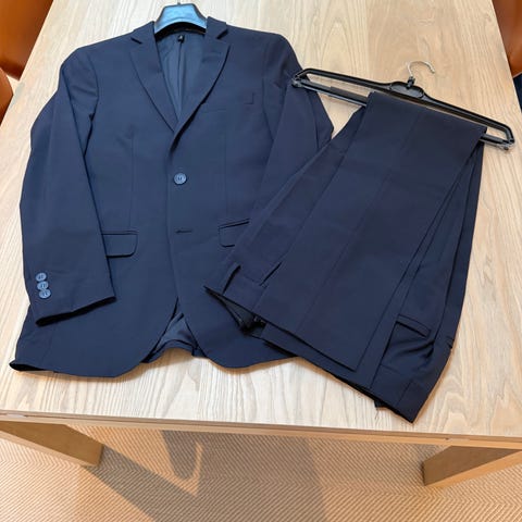 Slim fit jakkesæt, skjorte og slips brugt en enkelt gang til konfirmation sidste år. Som NYT. Slips er Cube Accessories. Alt er købt som samlet konfirmationstilbud i Buch i Vejle til 2000 kr. Kommer i dragtpose.
