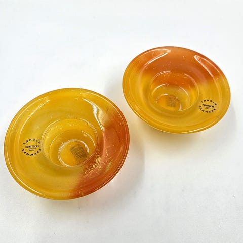 Foto 6-7 Fine små glasstager, SØHOLM DESIGN, Et sæt skønne stager i lilla/rosa nuancer i kunstglas fra Søholm Design/Danmark på Ø: 10 x 4 cm