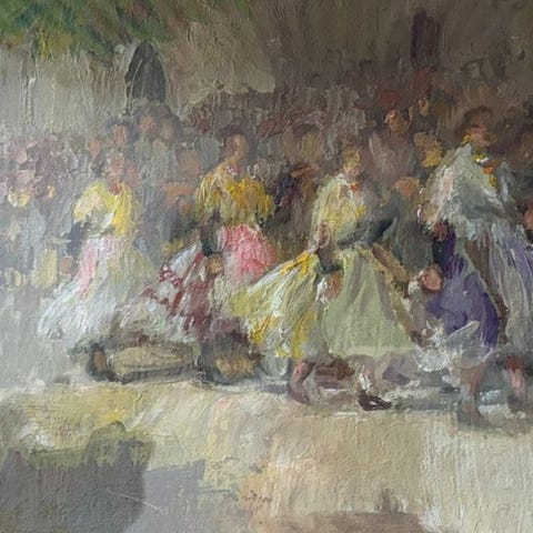 Oliemaleri, Kirsten Wrem, Kirsten Wrem, Bornholm, Frederiksberg - inspiration fra ophold på Cuba - datter af Ove Wrem og Grete Inge Petersen, som udstillede i 1951 i Galleri Birch sammen med Ernest Mancoba og Sonja Ferlov.