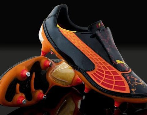 Ubrugte fodboldstøvler. Der medfølger en lille taske til transport af de beskidte støvler.