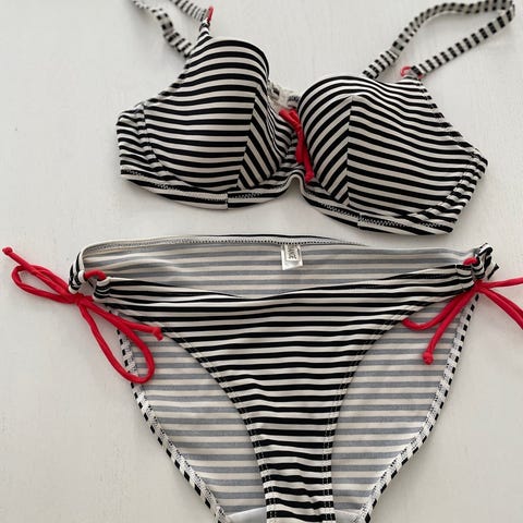 Junarose bikini, str. 46, god men brugt. Overdel er syet mindre i omkreds. Se fotos.