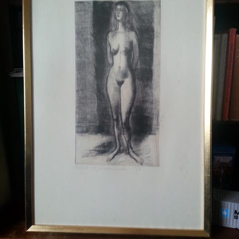 Radering fra 1946 af Poul Bjørklund. Mål i ramme 20 x 30. Sendes som en del af prisen.