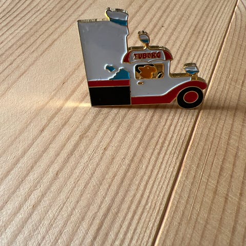 Tuborgbilen mrk. 24 KGF ca 40 år gammel. Bemærk dette er den originalenål, der findes nemlig efterligninger.
