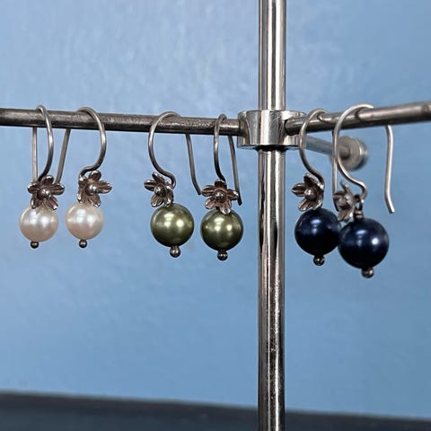 Mørk lilla perle øreringe.
