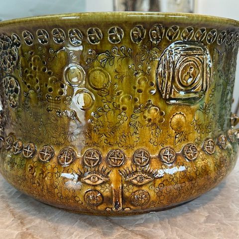 Bjørn Wiinblad Jongløren C38 i en fantastisk flot grøn/brun glasur. Ringene på denne er tykkere end den der normalt ses til salg. Den er 53 cm høj og 33 cm bred. Er i perfekt stand på nær en lille reparation på nederste kant som ses på sidste billede. Den kan afhentes i Horsens eller Risskov og sendes ikke. Jeg bruger ikke Fiks og færdig