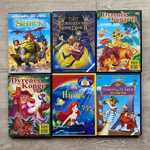Toy story, Shrek, ice age, Peter plys, Rasmus klump, Valhalla , postmand Per, biler