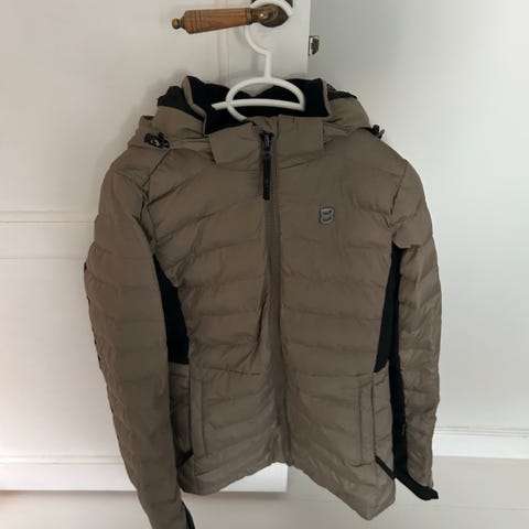 Rigtig fin skijakke til piger i størrelse 164. Jakken har en rigtig pæn pasform, gode praktiske lommer og aftagelig hætte. Jakken er i rigtig fin stand.