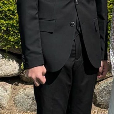 Flot konfirmationssæt med jakke, bukser og hvid skjorte. Kun brugt en dag og ingen fejl eller skader.