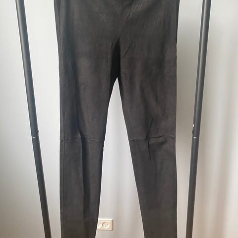 Super bløde ruskinds leggins i en meget smuk mørkegrå farve. Str. 40 med stretch.