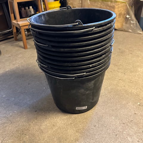 4 lidt støvede murespande.