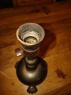 Dagslyslampe, 1 stk bordlampe H:28cm, muligvis født søm lysestage fra ca 1920 og senere lavet om til bordlampe, dette er dog kun gisninger. Sælges til kun 225kr Inkl forsendelse, eller 125kr afhentet på adressen.