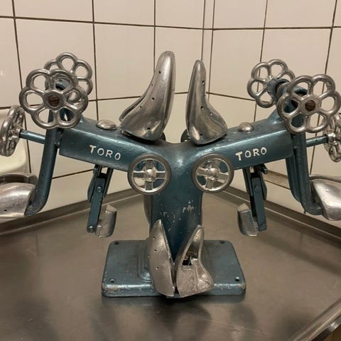Læst. Værktøj til fremstilling af sko. Pæn stand. Tre forskellige størrelser "fødder".