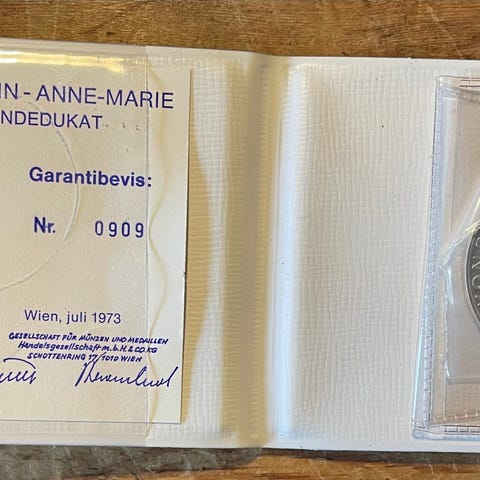 Leveres med nummereret certifikat i originalt medaljeomslag. Mindedukaten er naturligvis