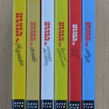 9 film med Olsen-banden sælges samlet. Tynde kassetter så de ikke fylder så meget.