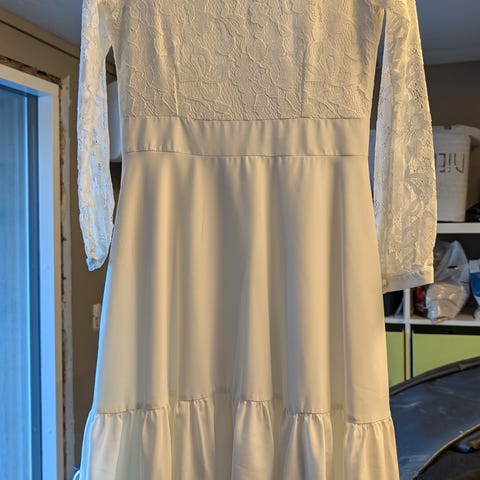 Pæn konfirmationskjole med blonder - brugt 2 gange. Skal have en rens inden brug.