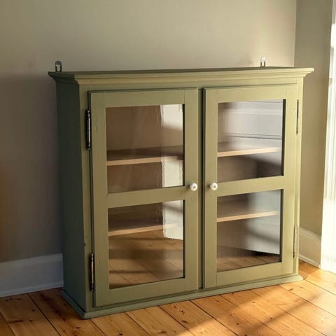 Smukt væghængt vitrineskab købt på Strandvejen i Hellerup. Helt nyt og aldrig brugt. Sælges fordi vi skal flytte og der desværre ikke er plads til det i vores nye hjem.
