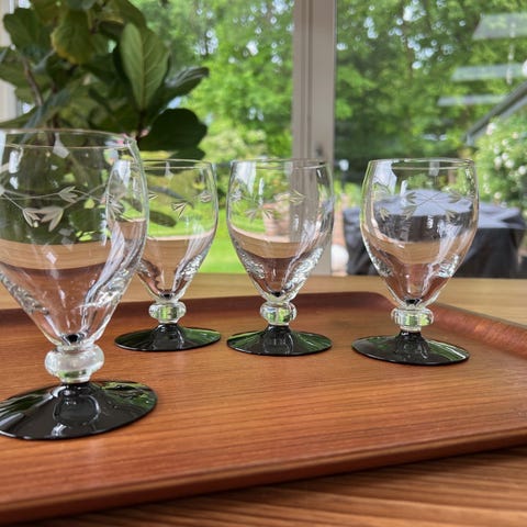 1 hvidvinsgals- Ranke, fra Holmegaard. På sort fod, med kugle i midten.
