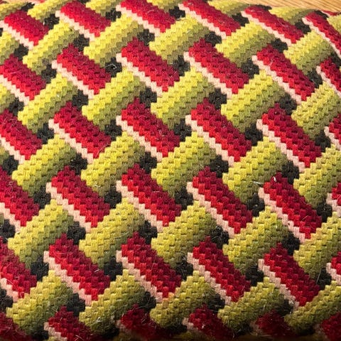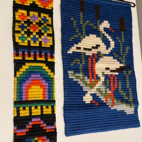 Broderet billede af landskab med ænder