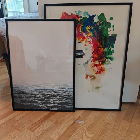 Ramme i sort metal og plexiglas, samt billede af tåget skov.
