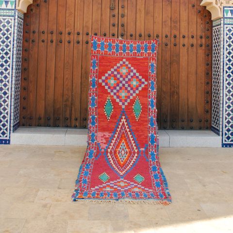 Boucherouite tæpper er lavet af genbrugte tekstiler , hentet fra gamle tøjstykker og stoffer. Væverne skærer forsigtigt disse materialer i strimler og væver dem sammen på en væv, hvilket skaber livlige og abstrakte mønstre. Hvert tæppe er unikt , hvilket afspejler håndværkerens kreativitet og sans for detaljer. De anvendte materialer er både bæredygtige og praktiske, hvilket gør tæpperne til en smuk og funktionel tilføjelse til ethvert hjem.