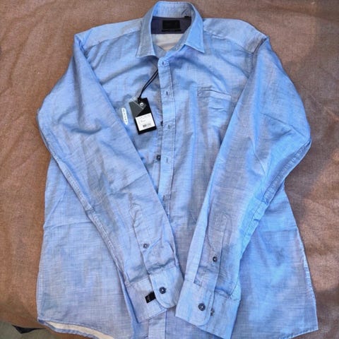 Sælger denne mørkeblå skjorte fra SAND i en størrelse 40 (der står 40 og 15 3/4 i mærket).