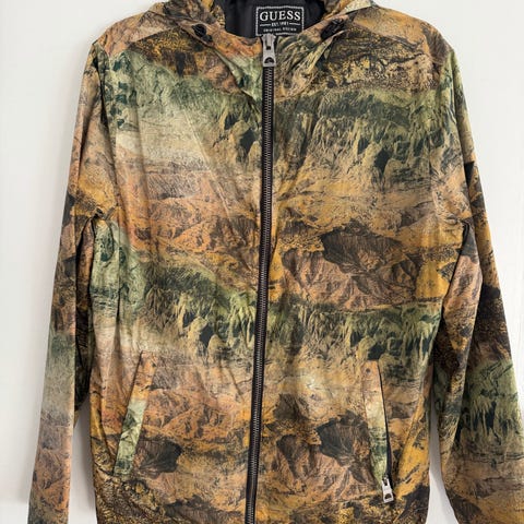 Flot marineblå jakke fra Guess i super lækker kvalitet, med masser af flotte detaljer. Desværre er den for lille til mig ( gave ) så aldrig været brugt.