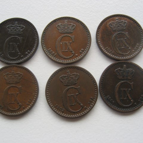1 øre 1875, 2 øre 1874, 1875 og 1886 - se billeder