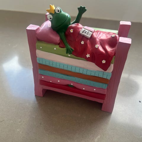 Sød sparebøsse i keramik. 40 år gammel. Fra ikke-ryger-hjem. 22-23 cm høj.