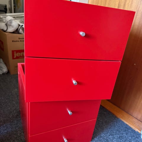 Medfølger 4 x skabsmoduler med låger og 2 x skuffemodul med 2 skuffer i hver.