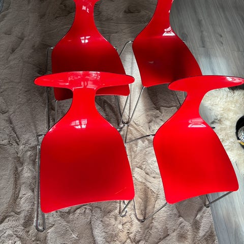 4 stk dolphin stole med fast ryg og flot stel. Skal ompolstres. Pris er for 4