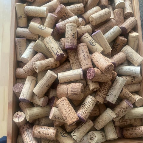 Det kan være en lidt uoverskuelig opgave at drikke vin nok til at samle nok propper i en fart, derfor kan du købe dig til dem. De er assorteret, fra forskellige huse og stand, nogle med vin stain. Der haves også et par champagne muselets