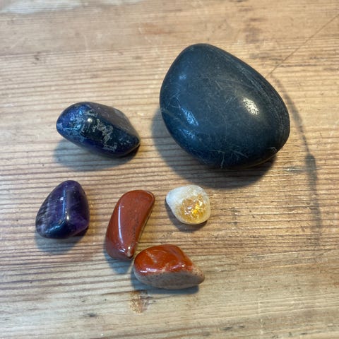 Blandet Sten, har været brugt til pynt, dekoration, 5 stk. pæne og blanke som nye. Prisen er for alle sammen, sælges kun samlet. Fast pris