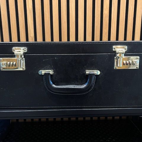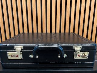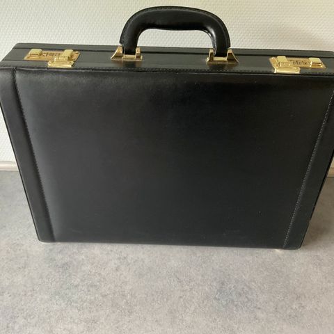 Diplomatmappe, ny og flot model i sort kunslæder og med udvendig lomme