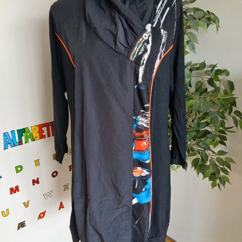 Tunika med glimmereffekt. Kan også passe en str M. Længde fra nakken og ned 78 cm.