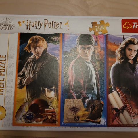 Harry Potter Puslespil med 3-hoved-hunden Fluffy. Produceret af Mattel, 300 brikker, komplet inkl. magisk forstørrelsesglas, størrelse b.46 x h.61 cm, god stand, kan sendes
