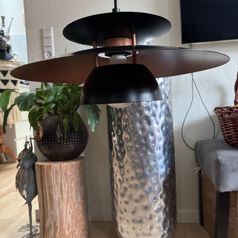 Sælger 2 stk. Eglo Maserlo pendellamper (Ø38 cm) i sort med kobber inderside. De er i rigtig god stand og fejler intet, men kan desværre ikke finde en plads til dem efter flytning.