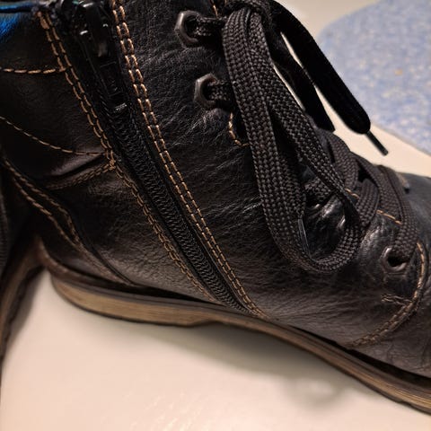 Herrestovler med elastik, RIEKER, skind, sort, str. 44. Som nye.