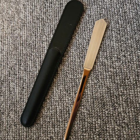 Brevåbneren er lavet i træ, har synlige brugsmærker som fremgår af billederne.