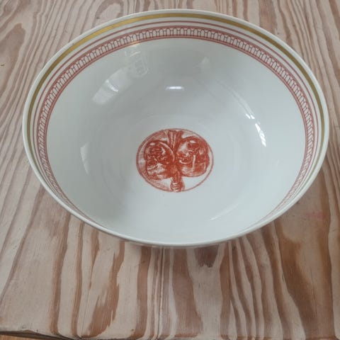 Bing & Grøndahl. Theatre Bowl af dekoreret og guldstafferet porcelæn. Ø 27 cm. Designet af Erik Clemmensen. Udsendt i anledning af 100- året for åbningen af Det Kongelige Teaters nuværende bygning på Kgs. Nytorv. nr. 116 af 1500.