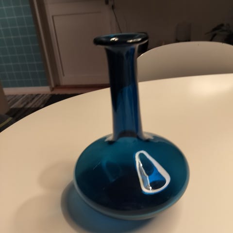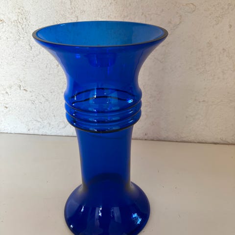 Blå Holmegaard vase # 17797 - er graveret med både Holmegaard og modelnummer. Højde cirka 24,5 cm.