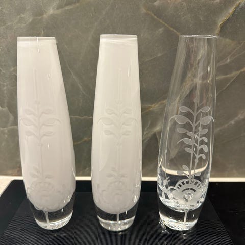 2 meget velholdte vaser i krystal. H 16 cm . Prisen er Fast. 200 pr stk.
