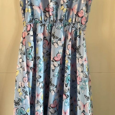 Lilla kjole med sommerfugle str 134 som ny