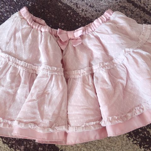 Størrelsen er anslået - der står "EUR 34" i den. Taljen måler ca. 66 cm og den er ca. 40 cm lang. Stoffet er elastisk.