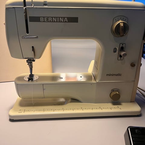 Kun en ejer, god og funktionel symaskine med år på bagen. Original kuffert, tilbehør og brugsanvisning.