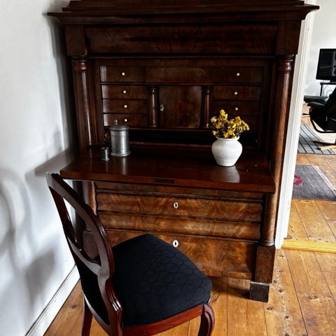 Shatol, 100 år gl., b: 123 d: 56 h: 121, Ældre flot shatol i fyrtræ fra mit barndomshjem i sydsjælland. Store skuffer til duge og sengetøj og små rum til nips og papir.