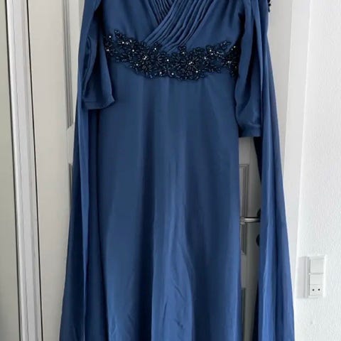 Flot blå lang galakjole str 38