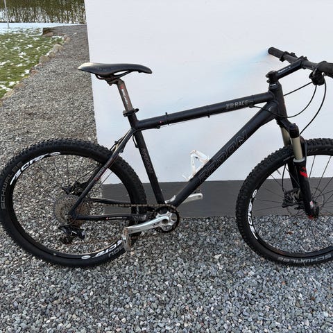 Fuld Carbon Principia MTB med Mavic SLR fælge 26 tommer og SRAM XX gear og Rockshox XX fordæmper. Brugt, men løbende vedligeholdt og udskiftet dele. Bagfælgen skal udskiftes, da den er gået op i svejsningen.