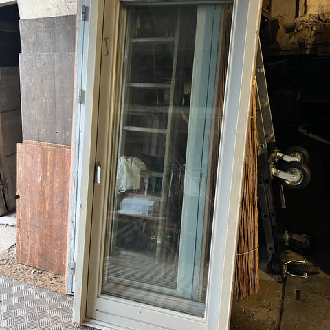 Terrassedøre i samlesæt fra nedlagt produktion. Karmmål 90x206cm. Købt til projekt som ikke blev til noget. 15 stk. dørrammer, 14 topkarme, ca. 30 sidekarme i fyr og 7 bundkarme i hårdttræ. 4000,- samlet.