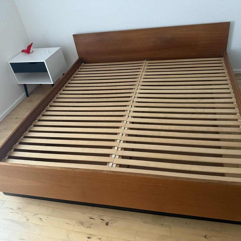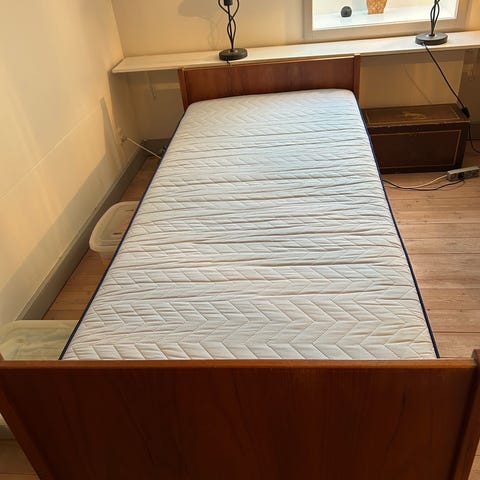 RETRO - Original teaktræs sengeramme /m. lameller og springmadras fra 1960'erne.