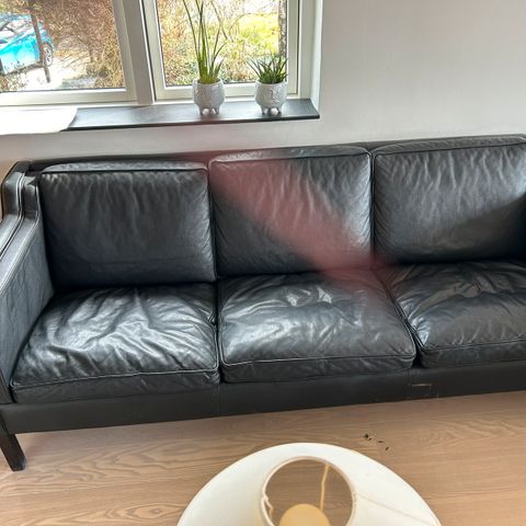 Mogens Hansen model2225 sort 3 pers lædersofa m flot patina. Bud modtages.